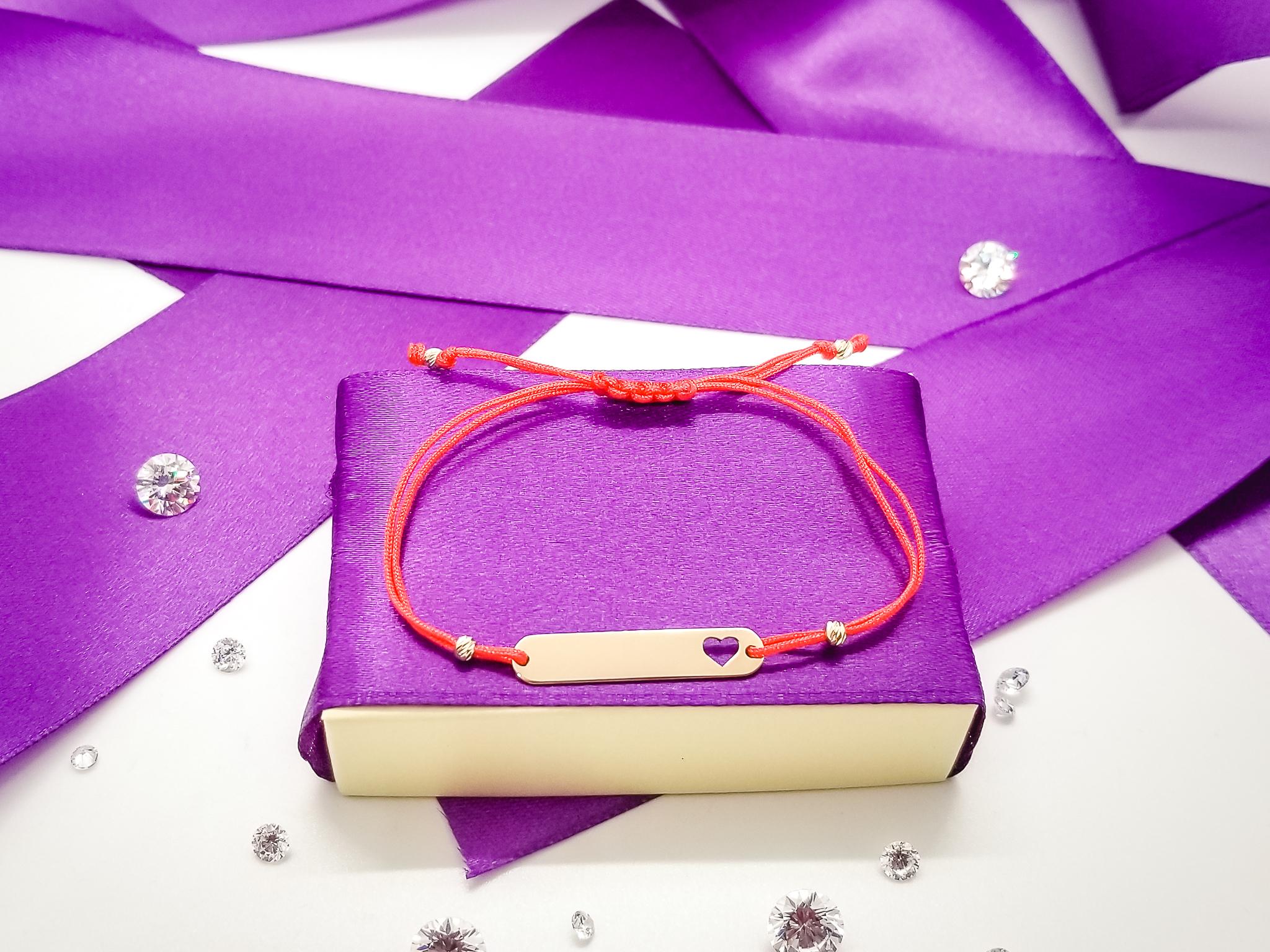 BRATARA COPII DREPTUNGHI CU INIMIOARA DIN AUR 14K CU SNUR FATI 172