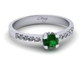 Inel de logodna realizat din aur alb 14K cu piatra principala 1 x Smarald de 3,00mm, incrustat cu 10 diamante mici ~ 0,12 ct ce ofera pietrei principale un plus de stalucire, culoare G-I, claritate VS2, taietura: rotund briliant - MDZ002