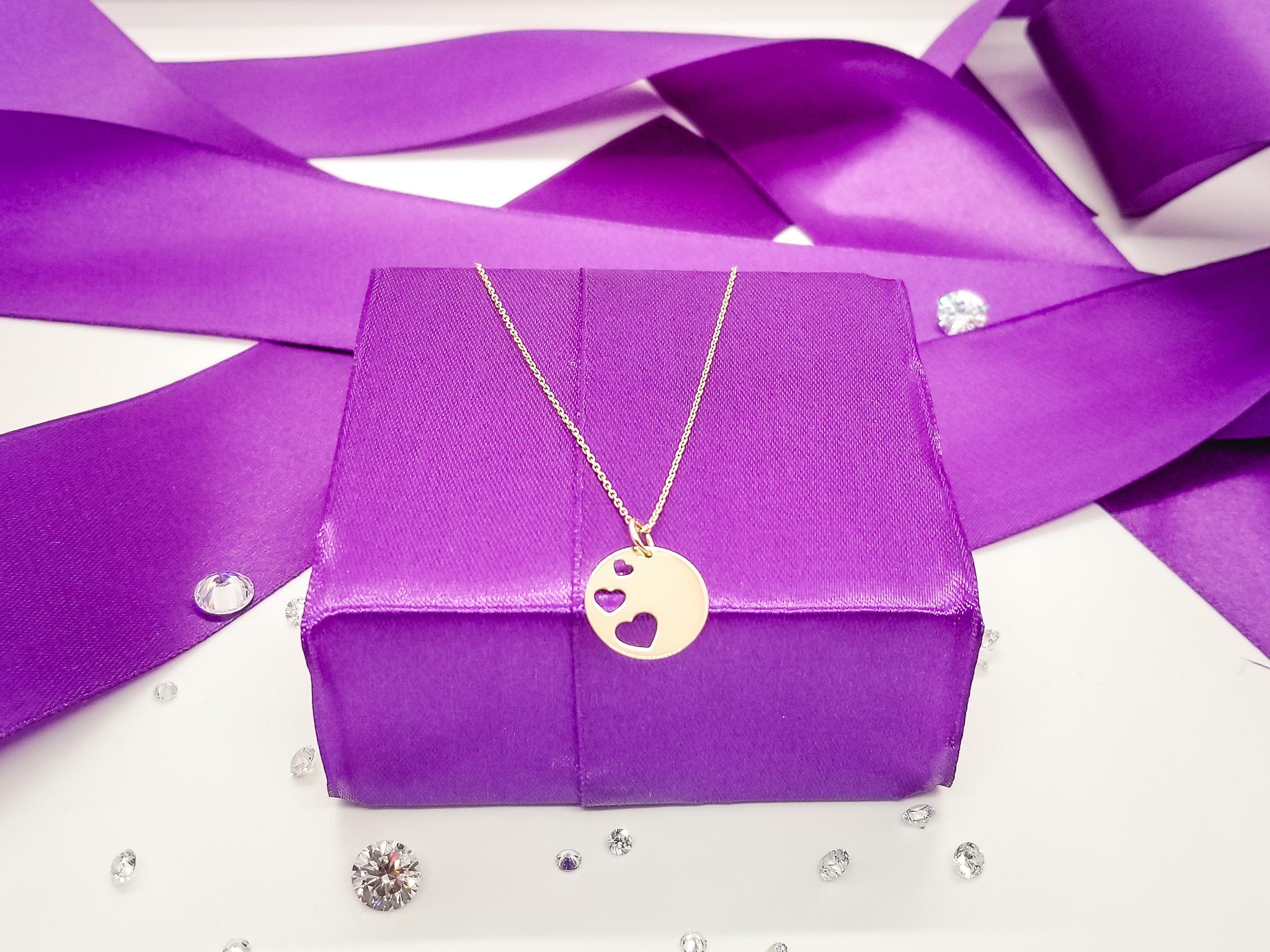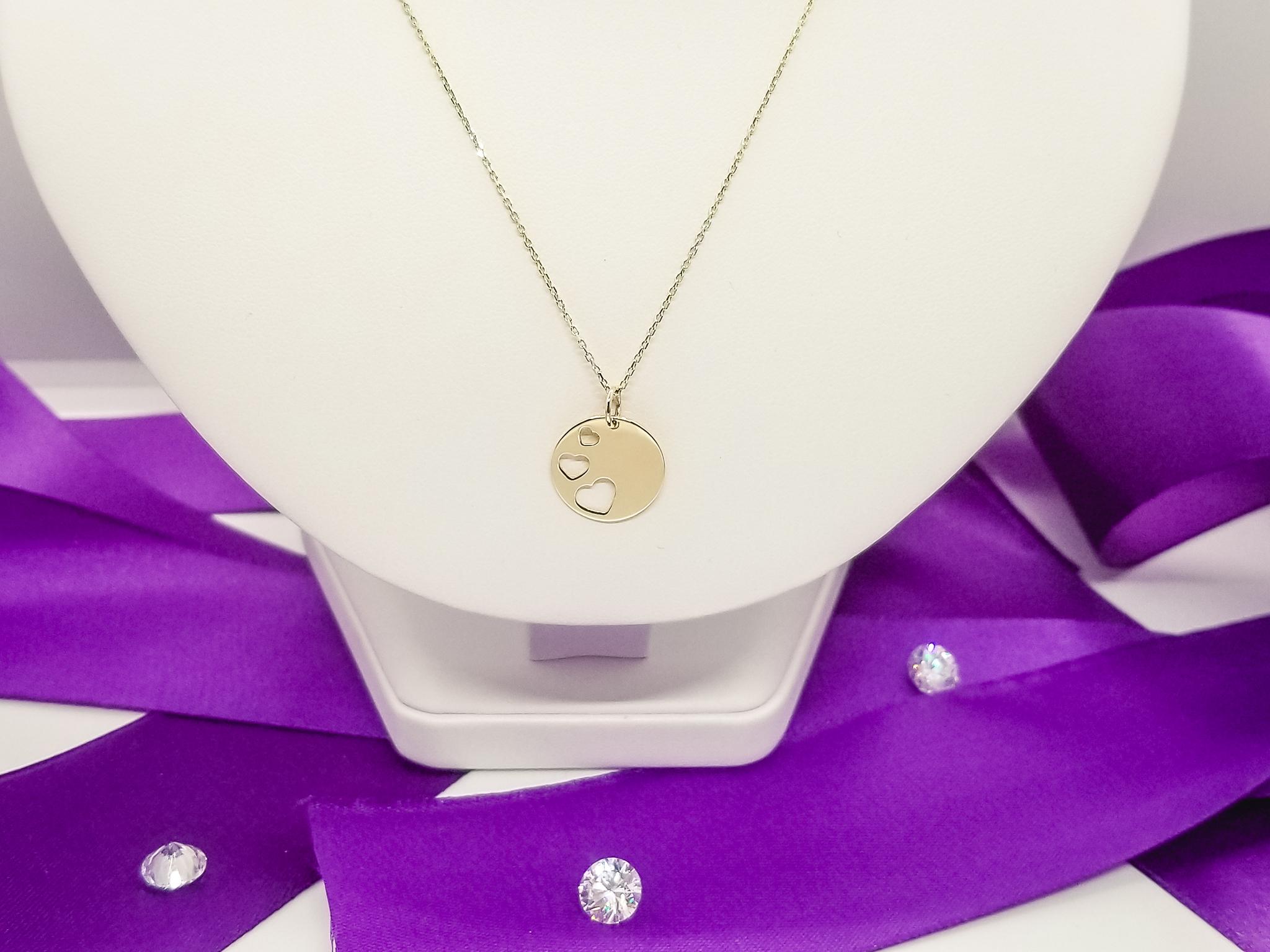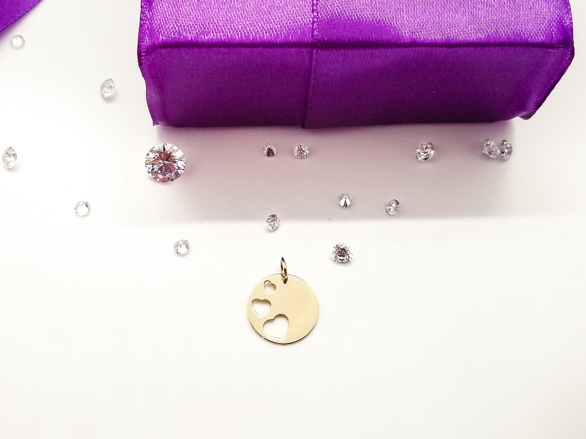 MEDALION BANUT CU 3 INIMI DIN AUR 14K FATI 202. Toate Bijuteriile LaBeruzi sunt insotite de certificate de garantie, care atesta calitatea metalului si a pietrelor pretioase. Pentru fiecare comanda online va oferim BON FISCAL, ambalarea cadou .