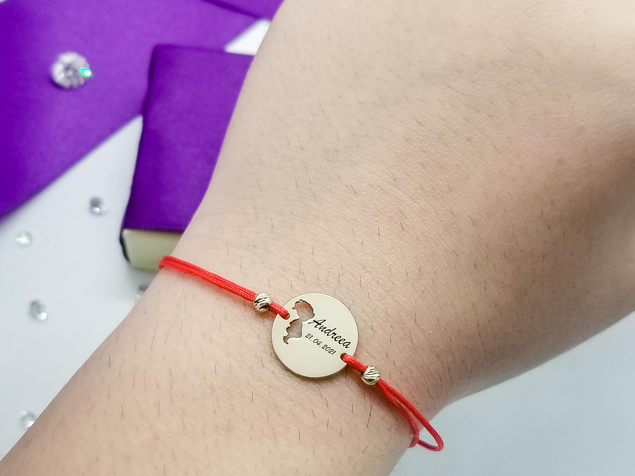 Bratara FATI 196 din aur galben de 14K cu snur rosu model Banut cu Fetita. Toate Bijuteriile LaBeruzi sunt insotite de certificate de garantie, care atesta calitatea metalului si a pietrelor pretioase. Pentru fiecare comanda online va oferim BON FISCAL, ambalarea cadou.