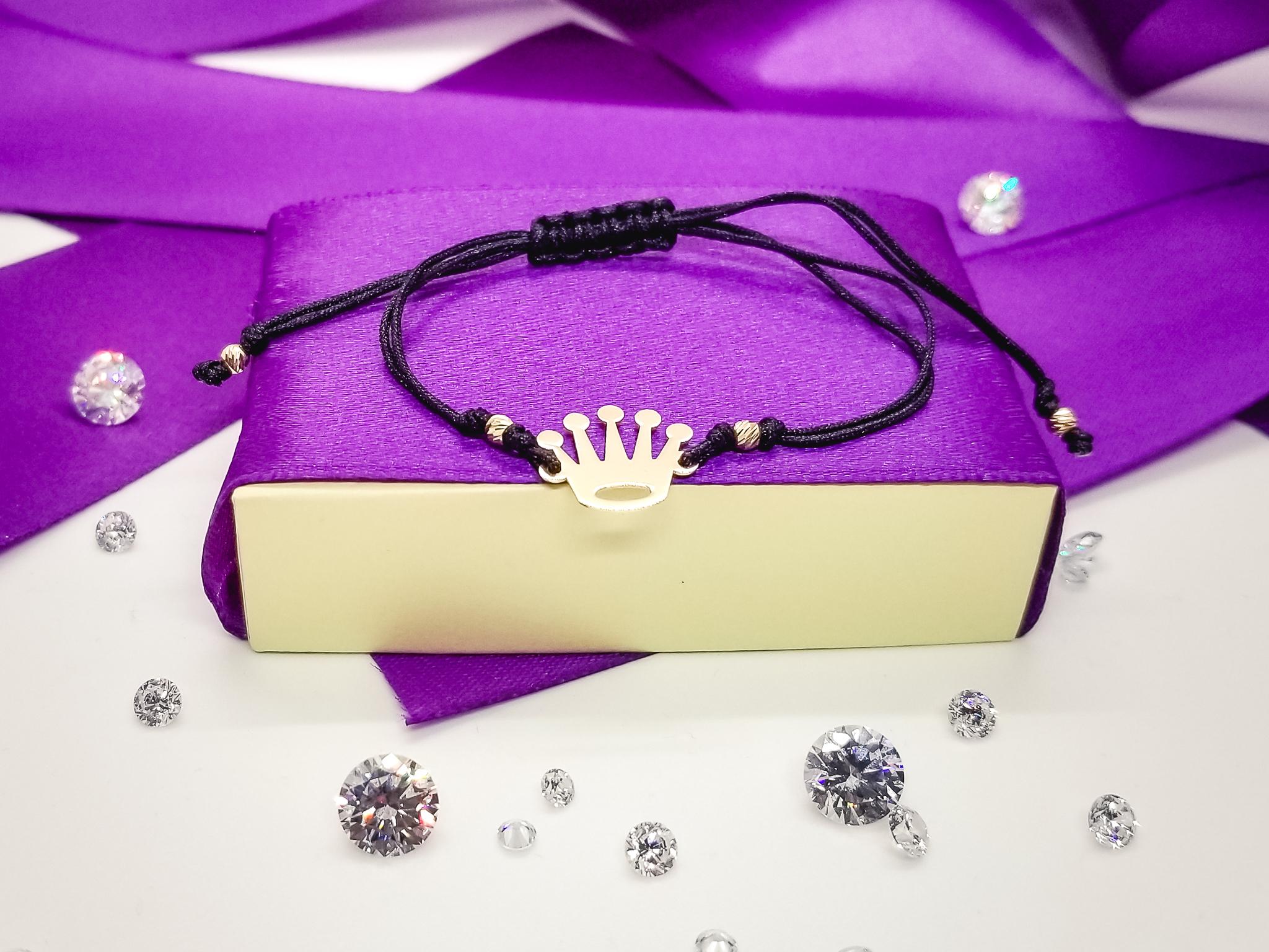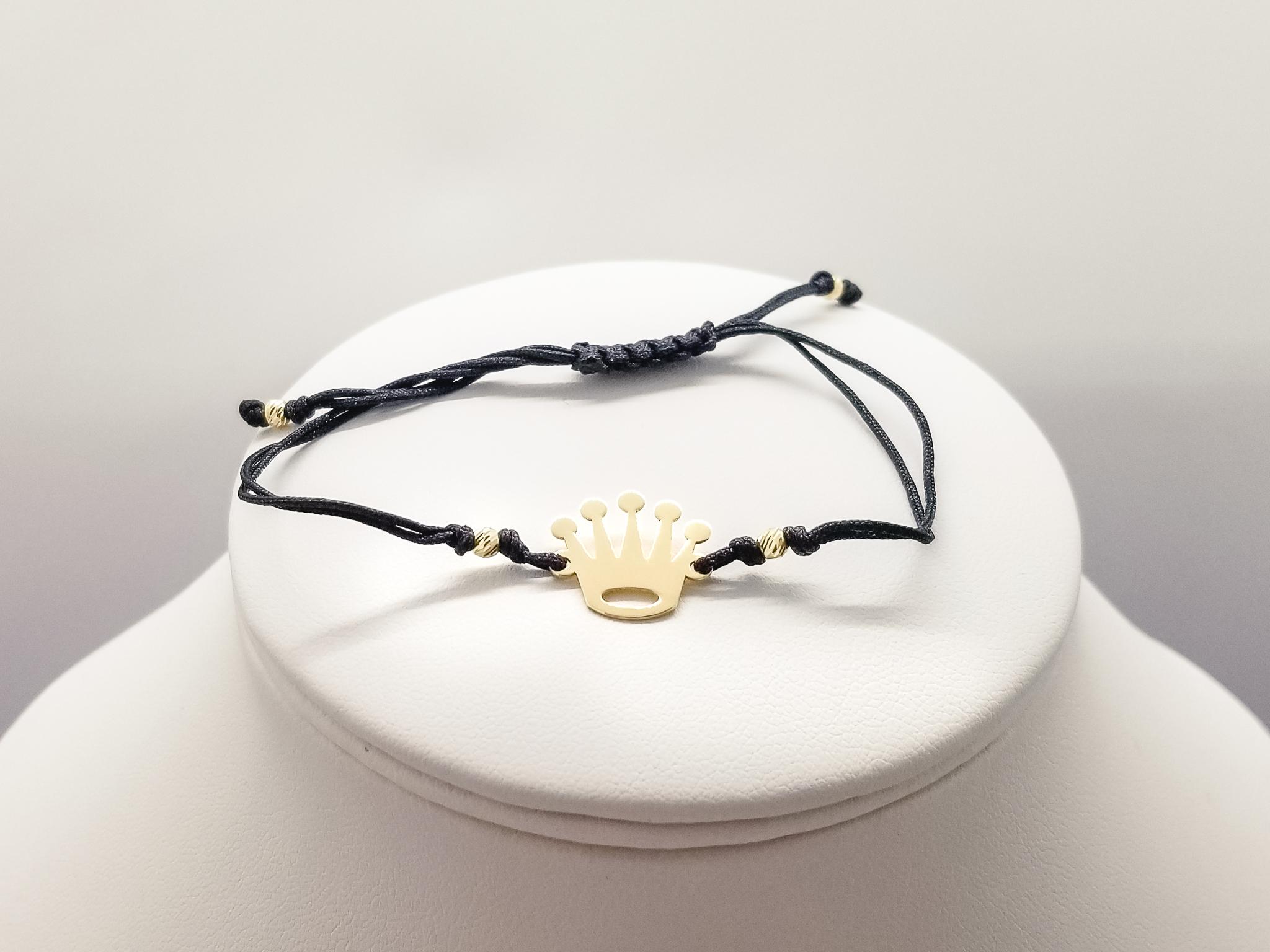 Bratara FATI 183 din aur galben de 14K cu snur negru model Coroana. Toate Bijuteriile LaBeruzi sunt insotite de certificate de garantie, care atesta calitatea metalului si a pietrelor pretioase. Pentru fiecare comanda online va oferim BON FISCAL, ambalarea cadou.