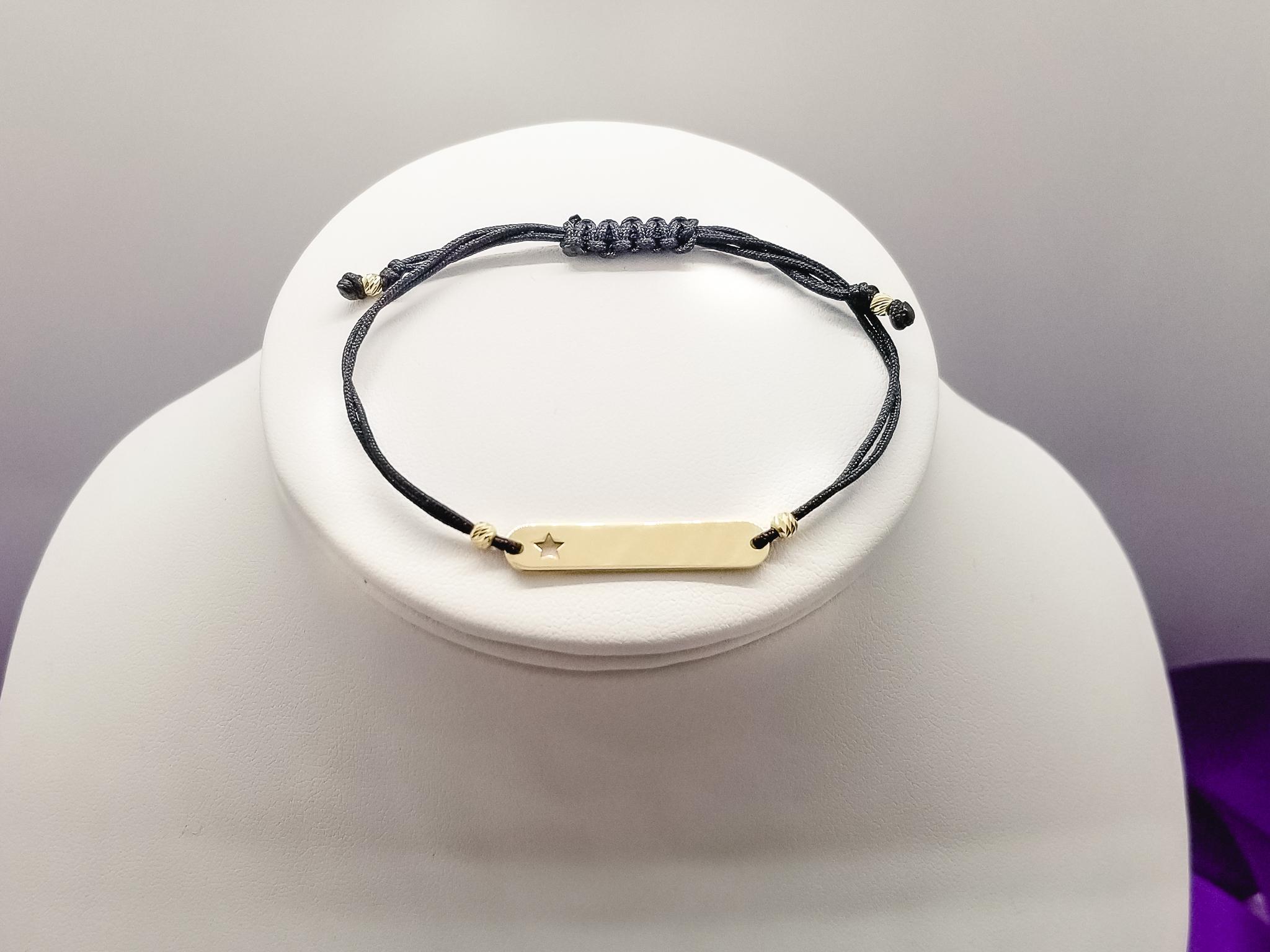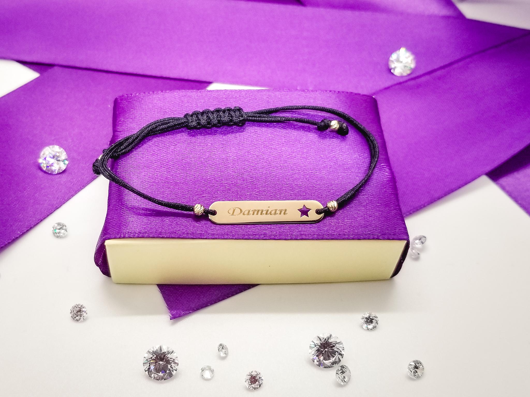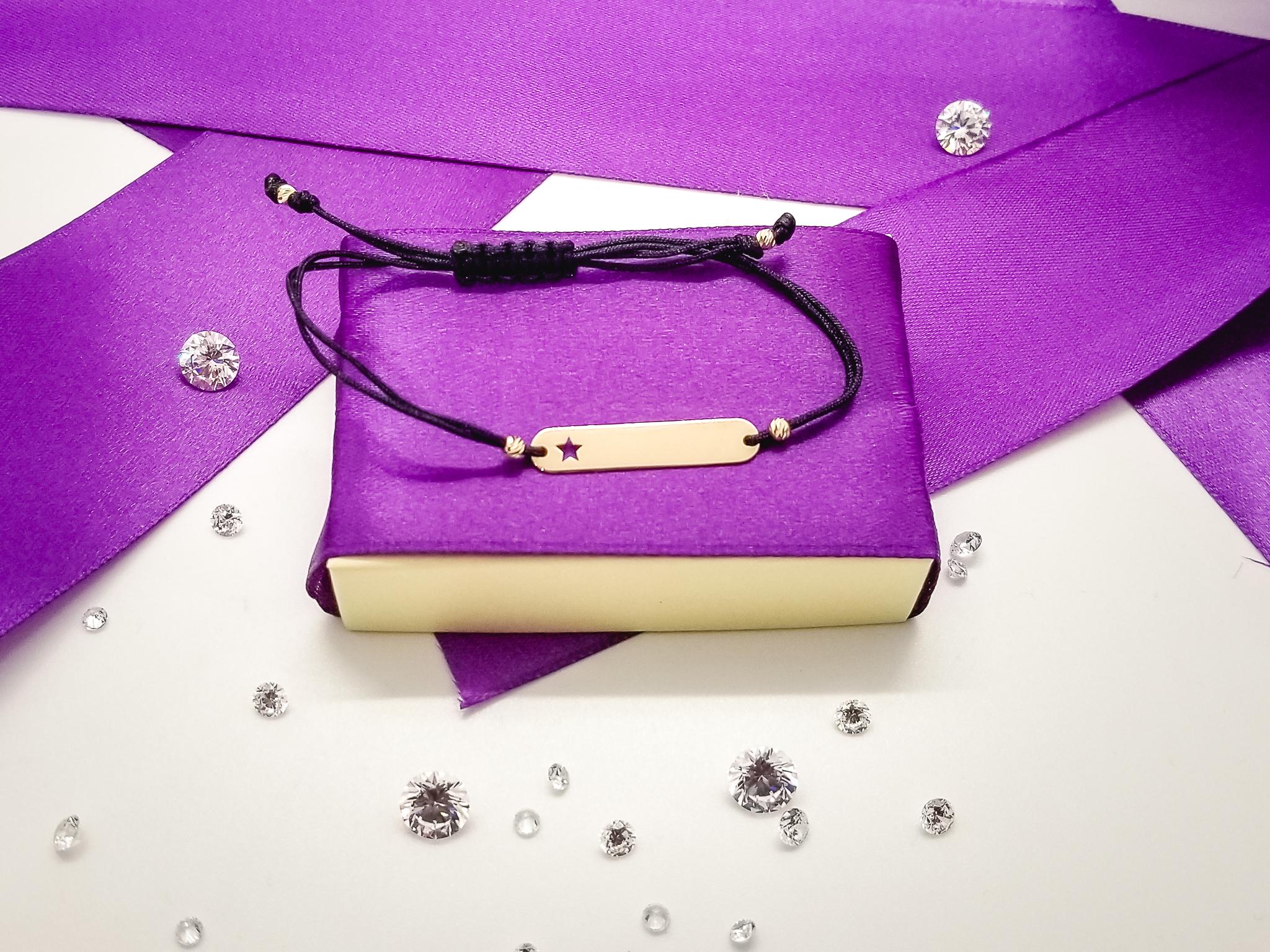Bratara FATI 184 din aur galben de 14K cu snur negru model Dreptunghi rotunjit cu steluta si mesaj. Toate Bijuteriile LaBeruzi sunt insotite de certificate de garantie, care atesta calitatea metalului si a pietrelor pretioase. Pentru fiecare comanda online va oferim BON FISCAL, ambalarea cadou.