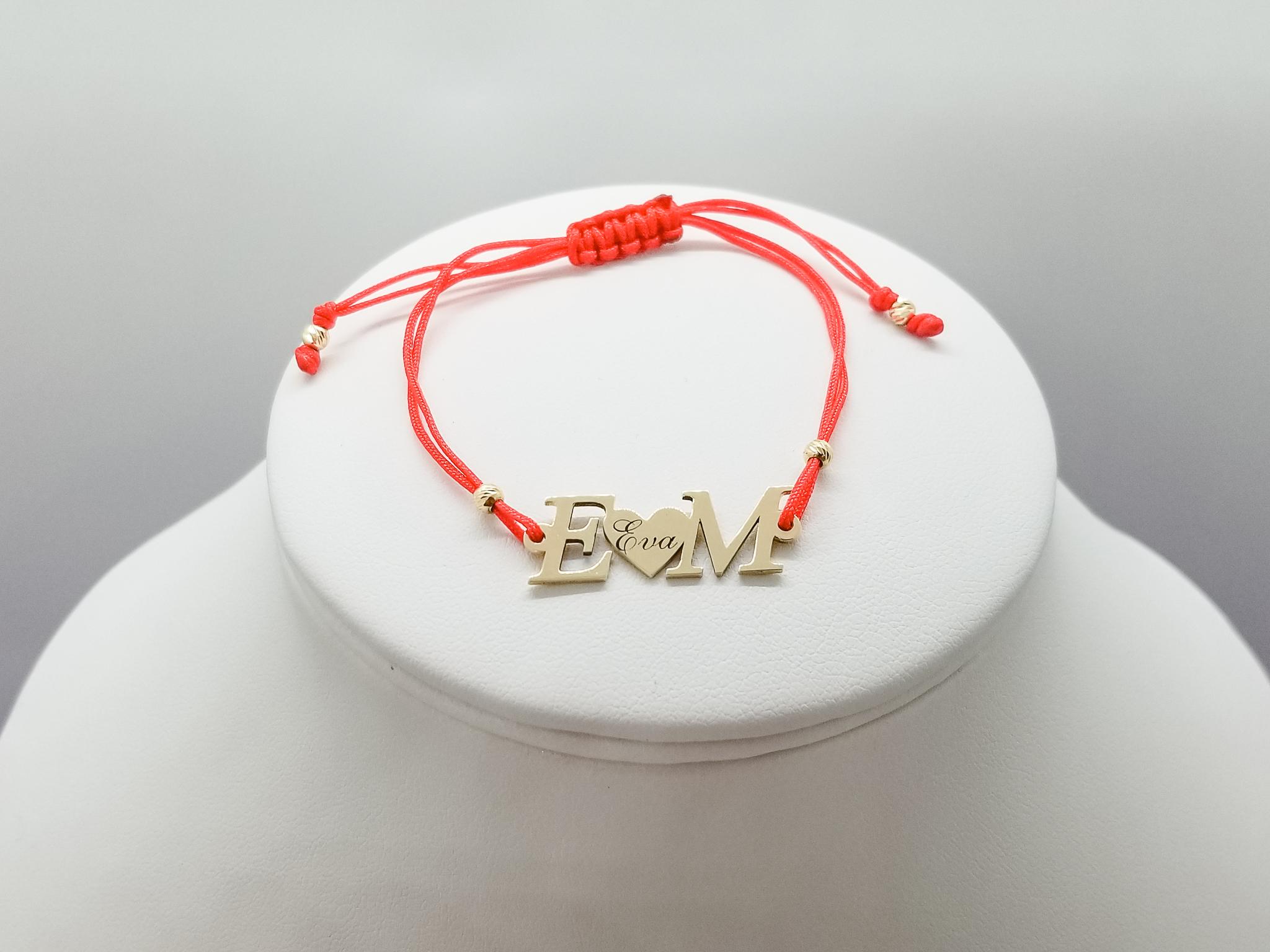 Bratara FATI 47 Nume cu Inima din aur galben de 14K cu snur rosu. Toate Bijuteriile LaBeruzi sunt insotite de certificate de garantie, care atesta calitatea metalului si a pietrelor pretioase. Pentru fiecare comanda online va oferim BON FISCAL, ambalarea cadou.