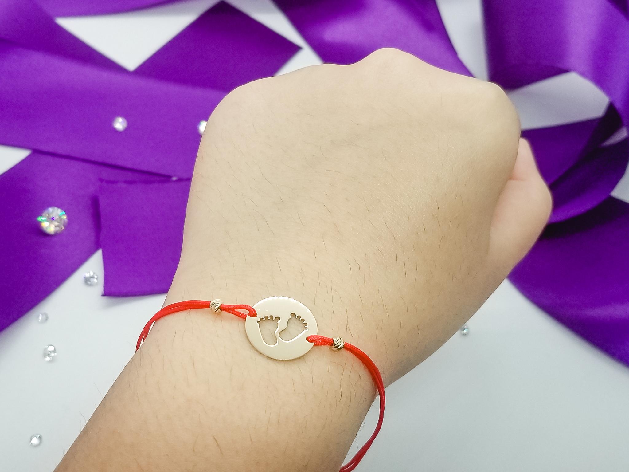 Bratara FATI 220 din aur galben de 14K cu snur rosu model Banut cu Urme de Bebelus. Toate Bijuteriile LaBeruzi sunt insotite de certificate de garantie, care atesta calitatea metalului si a pietrelor pretioase. Pentru fiecare comanda online va oferim BON FISCAL, ambalarea cadou.