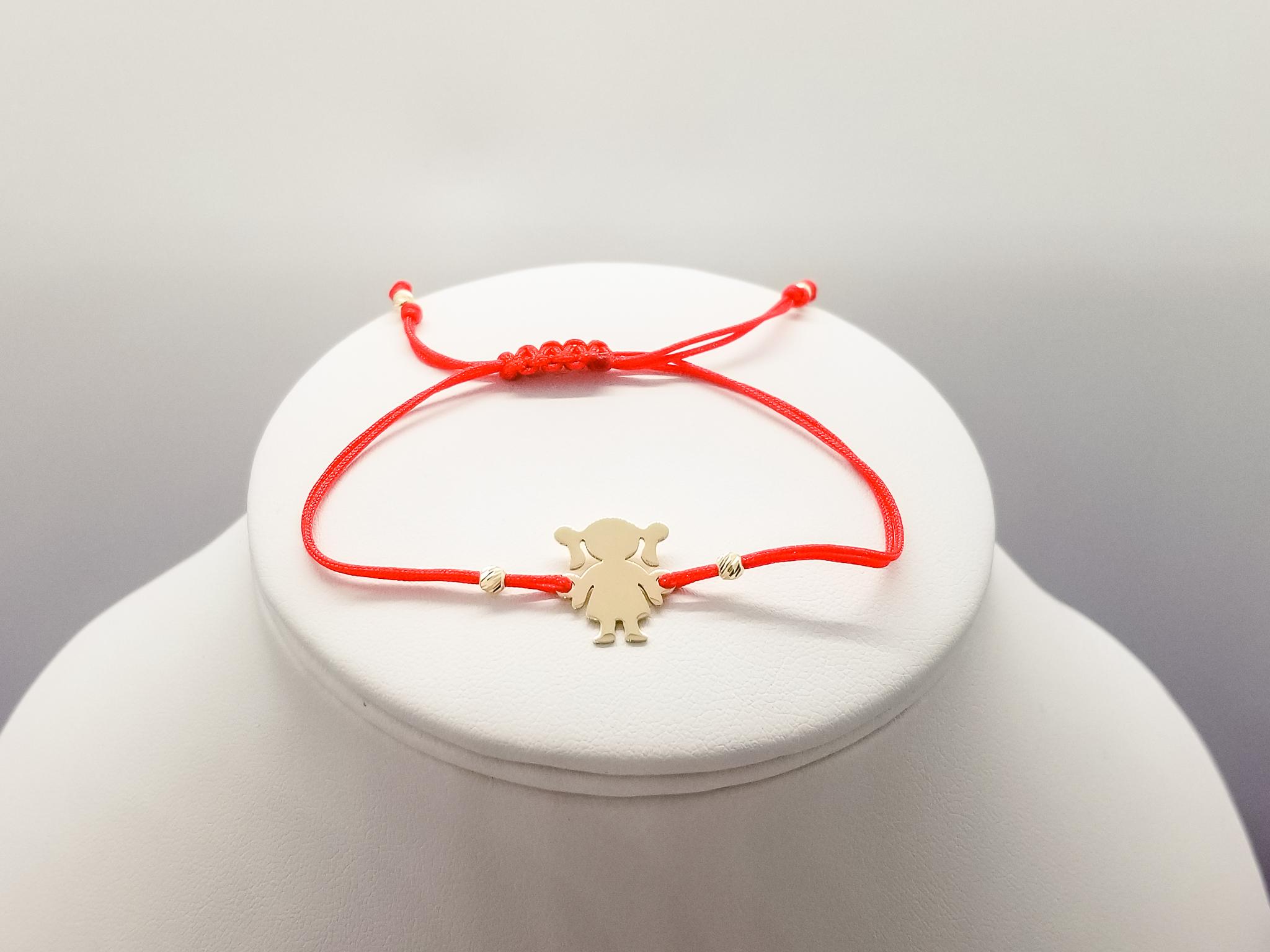 Bratara FATI 173 din aur galben de 14K cu snur rosu model Fetita. Toate Bijuteriile LaBeruzi sunt insotite de certificate de garantie, care atesta calitatea metalului si a pietrelor pretioase. Pentru fiecare comanda online va oferim BON FISCAL, ambalarea cadou.