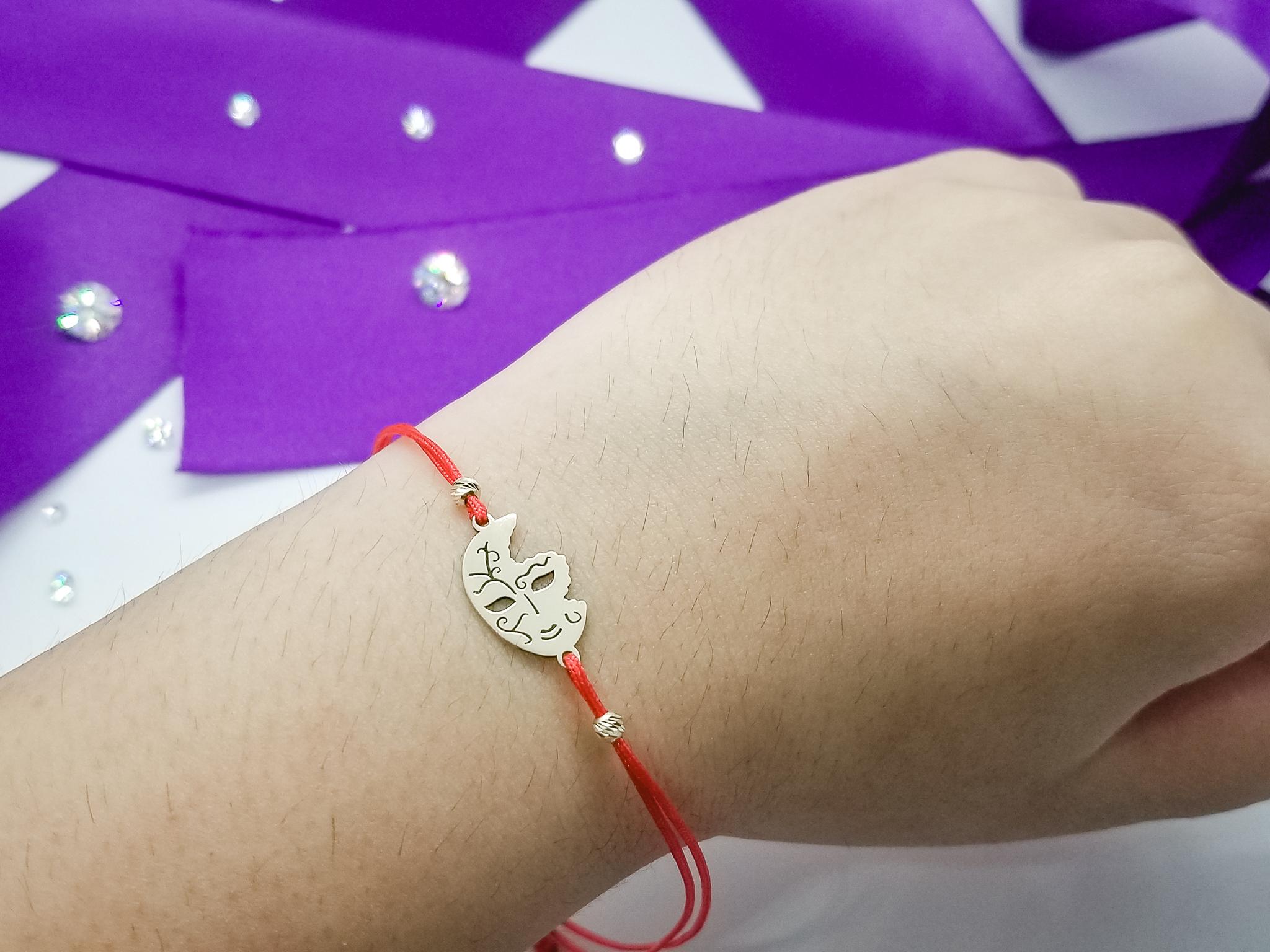 Bratara FATI 223 din aur galben de 14K cu snur rosu model Masca. Toate Bijuteriile LaBeruzi sunt insotite de certificate de garantie, care atesta calitatea metalului si a pietrelor pretioase. Pentru fiecare comanda online va oferim BON FISCAL, ambalarea cadou.