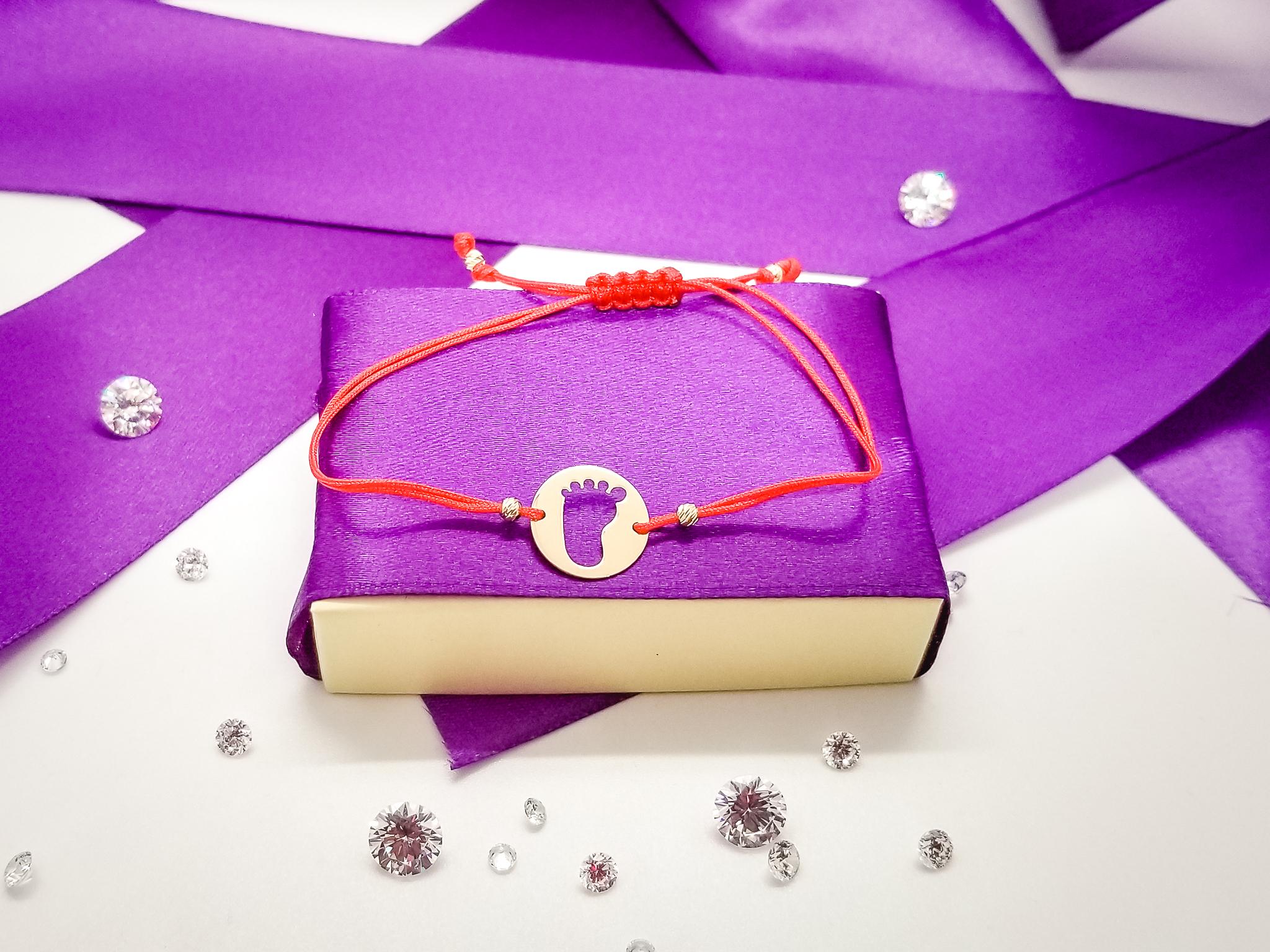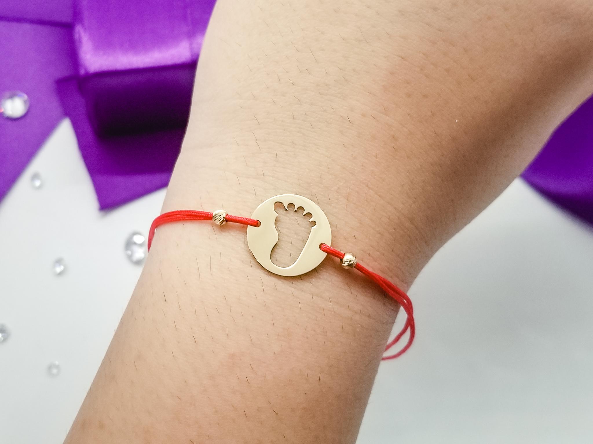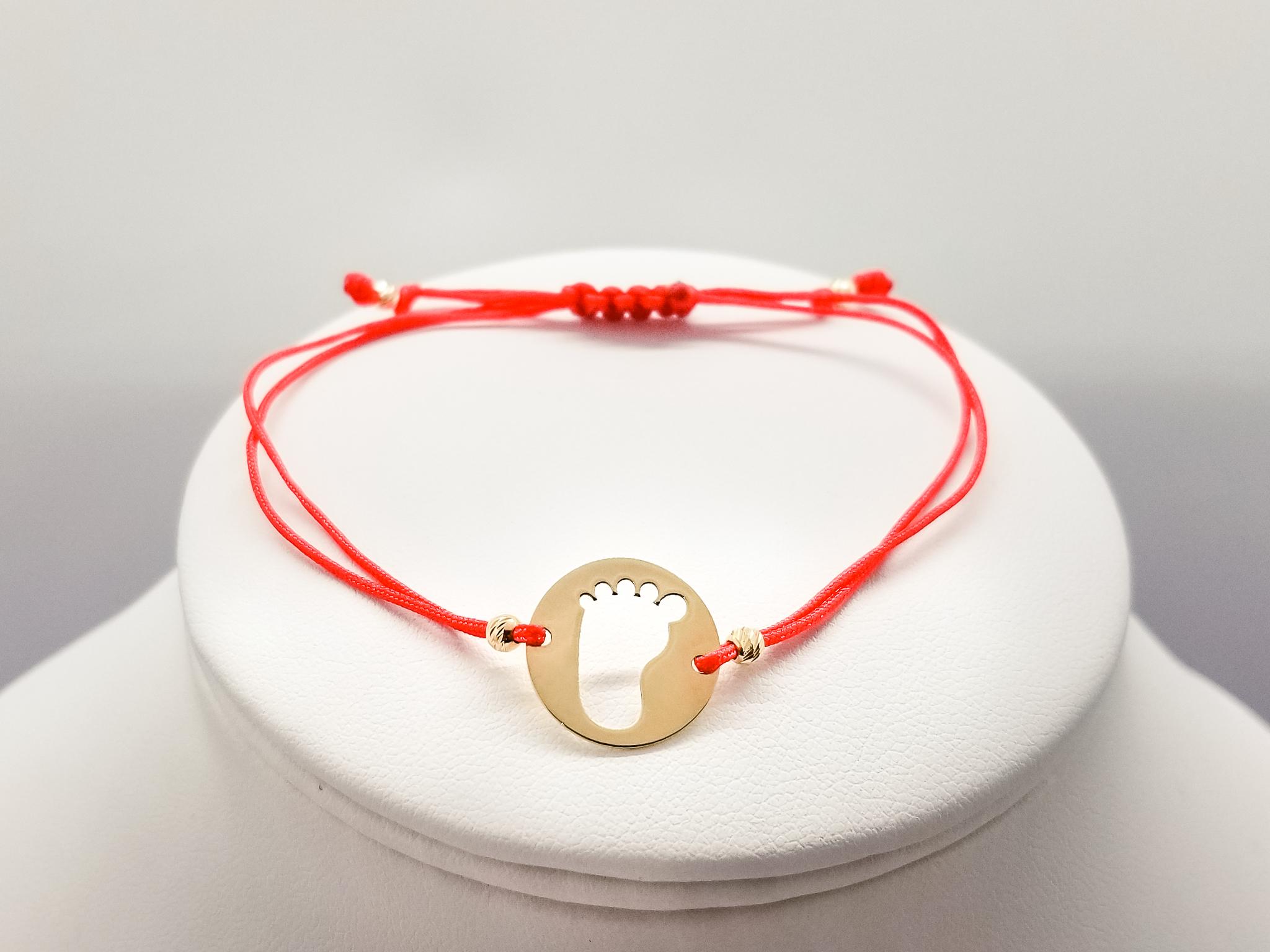 Bratara FATI 166 din aur galben de 14K cu snur rosu model Urma de Bebelus. Toate Bijuteriile LaBeruzi sunt insotite de certificate de garantie, care atesta calitatea metalului si a pietrelor pretioase. Pentru fiecare comanda online va oferim BON FISCAL, ambalarea cadou.