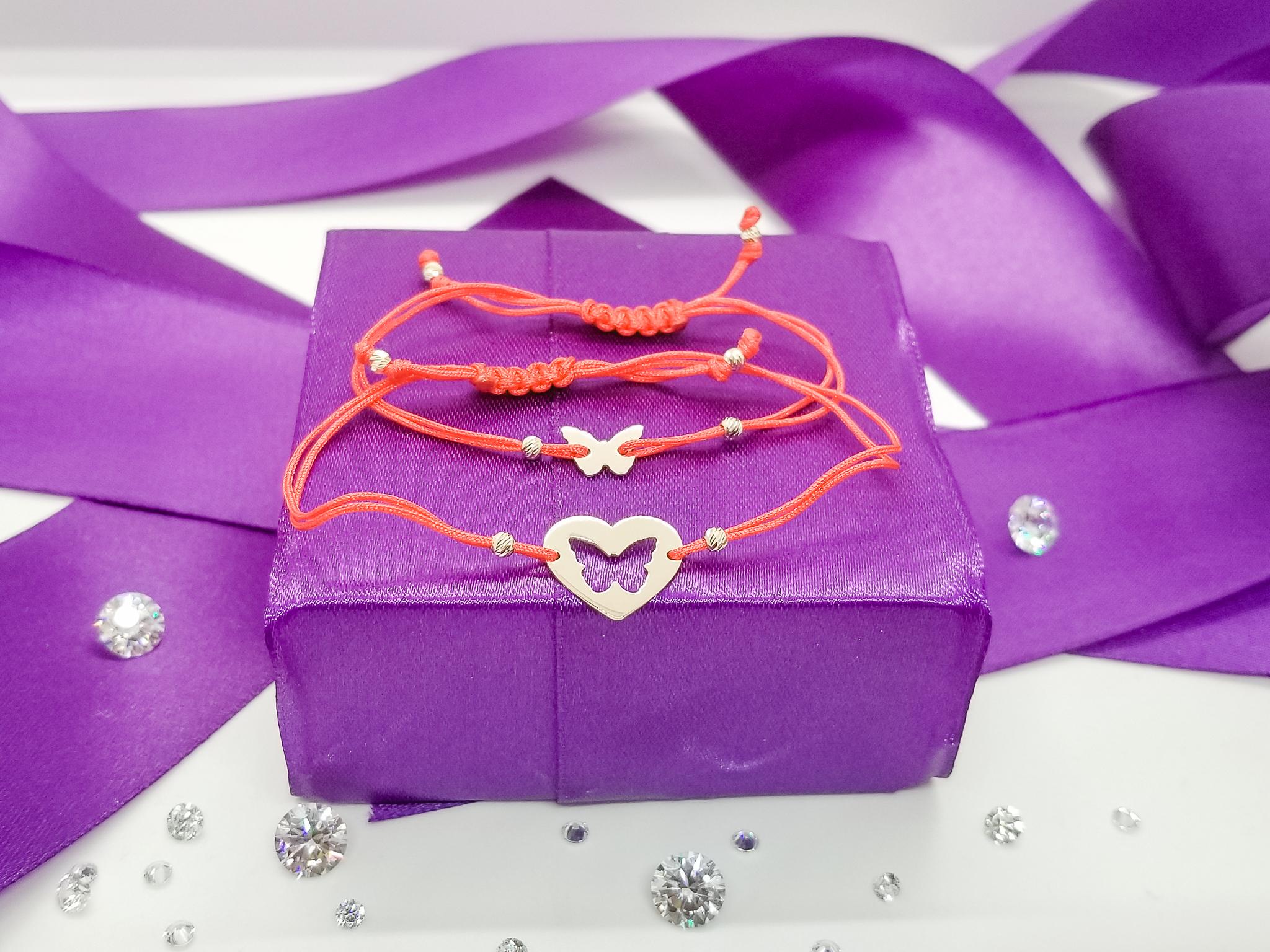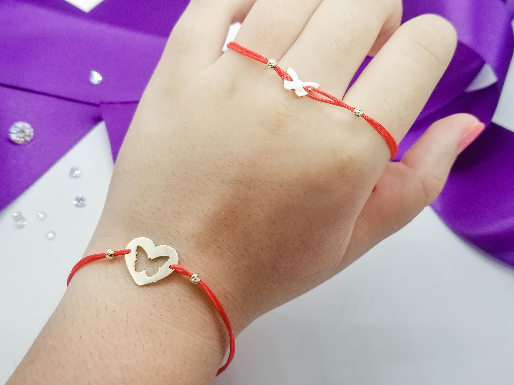 SET Bratara FATI 216 Mama si Fica din aur galben de 14K model Inima cu Fluturas cu snur rosu model. Toate Bijuteriile LaBeruzi sunt insotite de certificate de garantie, care atesta calitatea metalului si a pietrelor pretioase. Pentru fiecare comanda online va oferim BON FISCAL, ambalarea cadou.